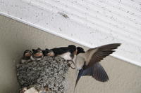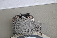7月12日(月)朝、出勤して玄関にあるツバメの巣を見ると、雛が1羽もいなくなっていました。周りを探しましたが、雛の姿を見ることはできませんでした。巣の下の糞の様子から土曜日に巣立って行ったようです。来年また帰ってきてほしいと思います。
