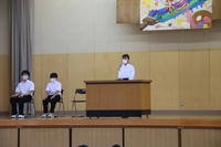 7月6日(火)全校朝会で熱中症防止教室を行いました。