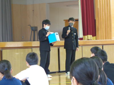 はじめに生徒会長から意見箱について説明がありました。